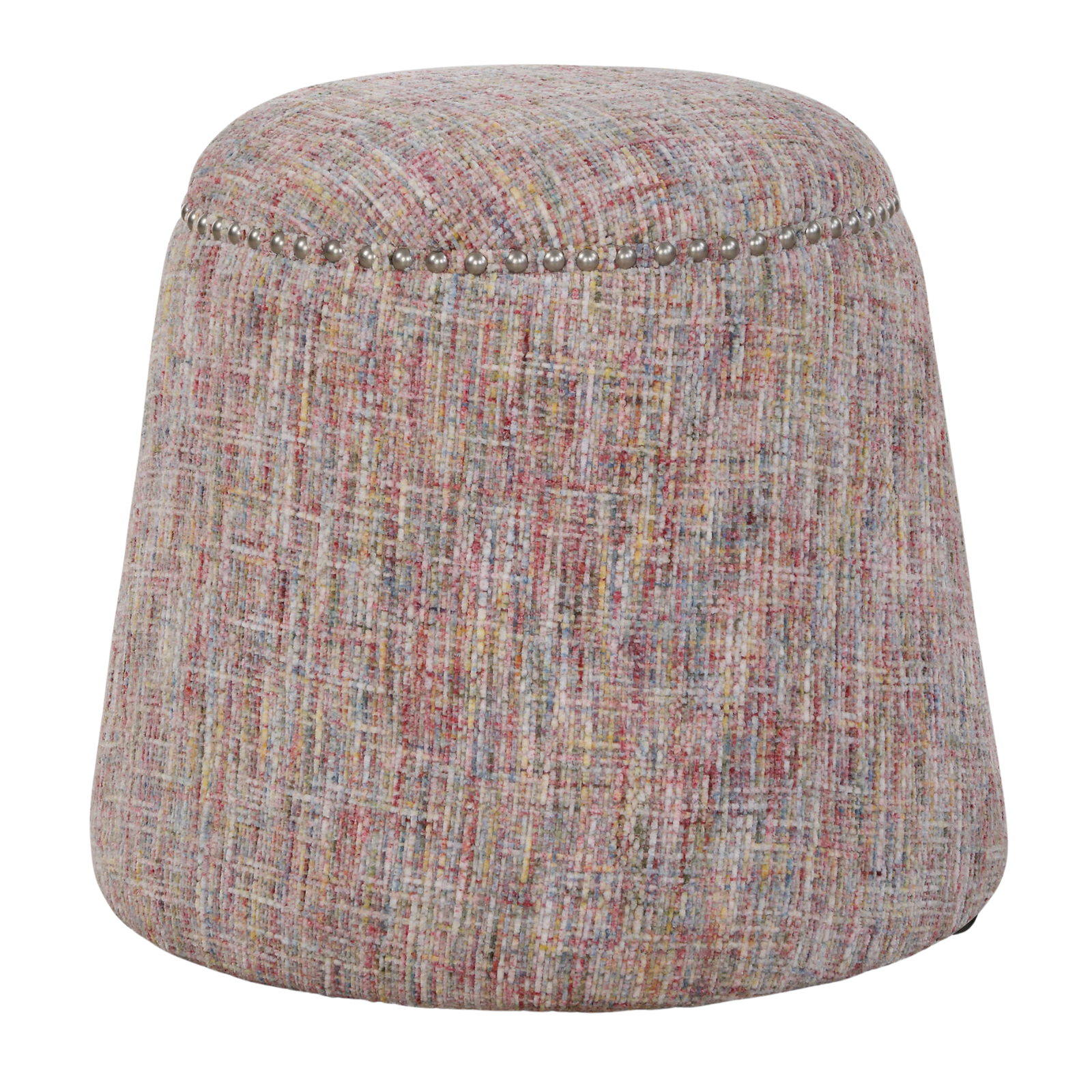 Ce pouf moelleux est recouvert d'un tissu chenille à motifs confettis ludiques, rehaussé de clous en nickel brossé. Polyvalent et élégant, il peut servir de siège ou de repose-pieds, être utilisé en groupe ou comme pièce d'appoint.