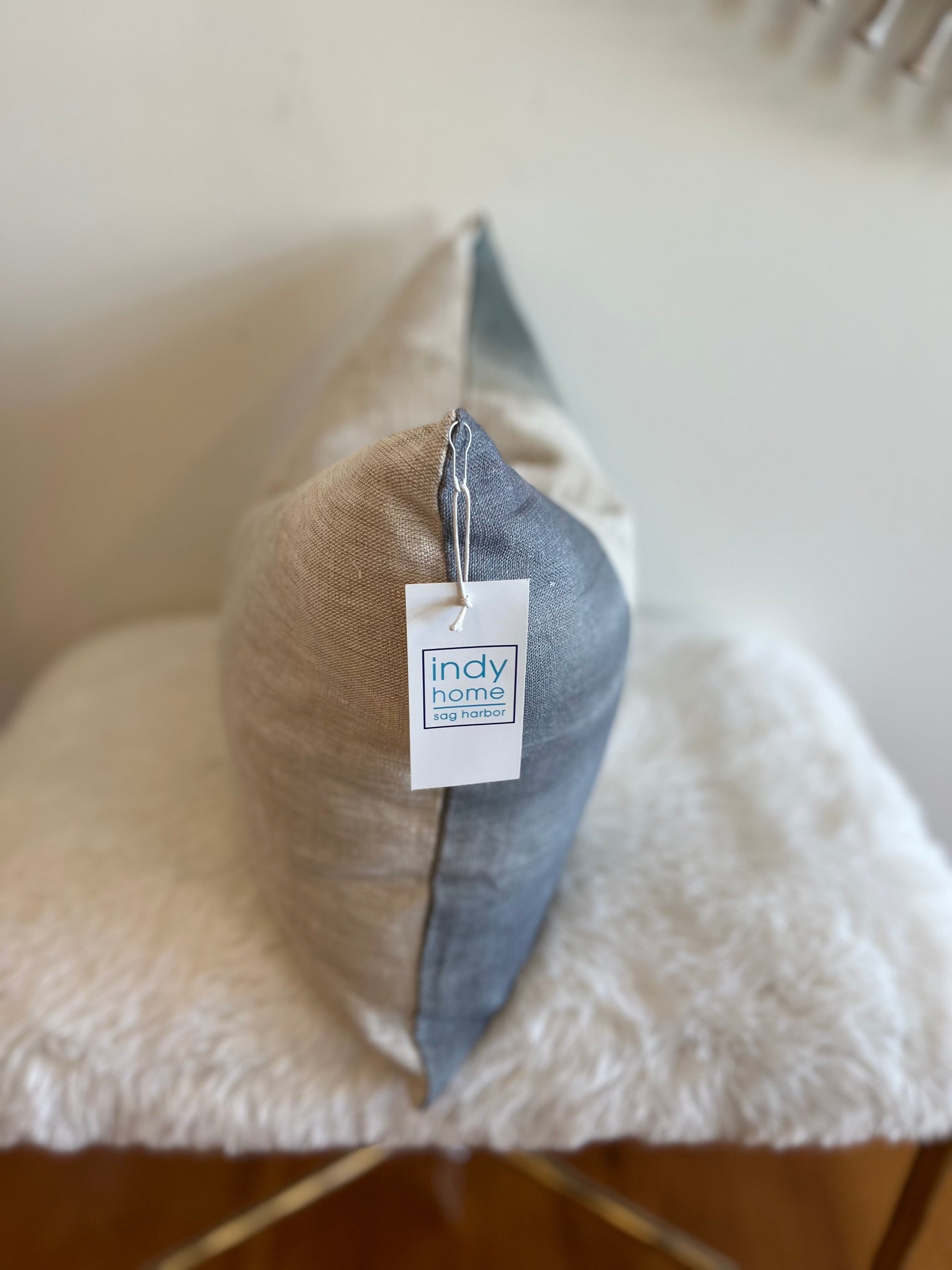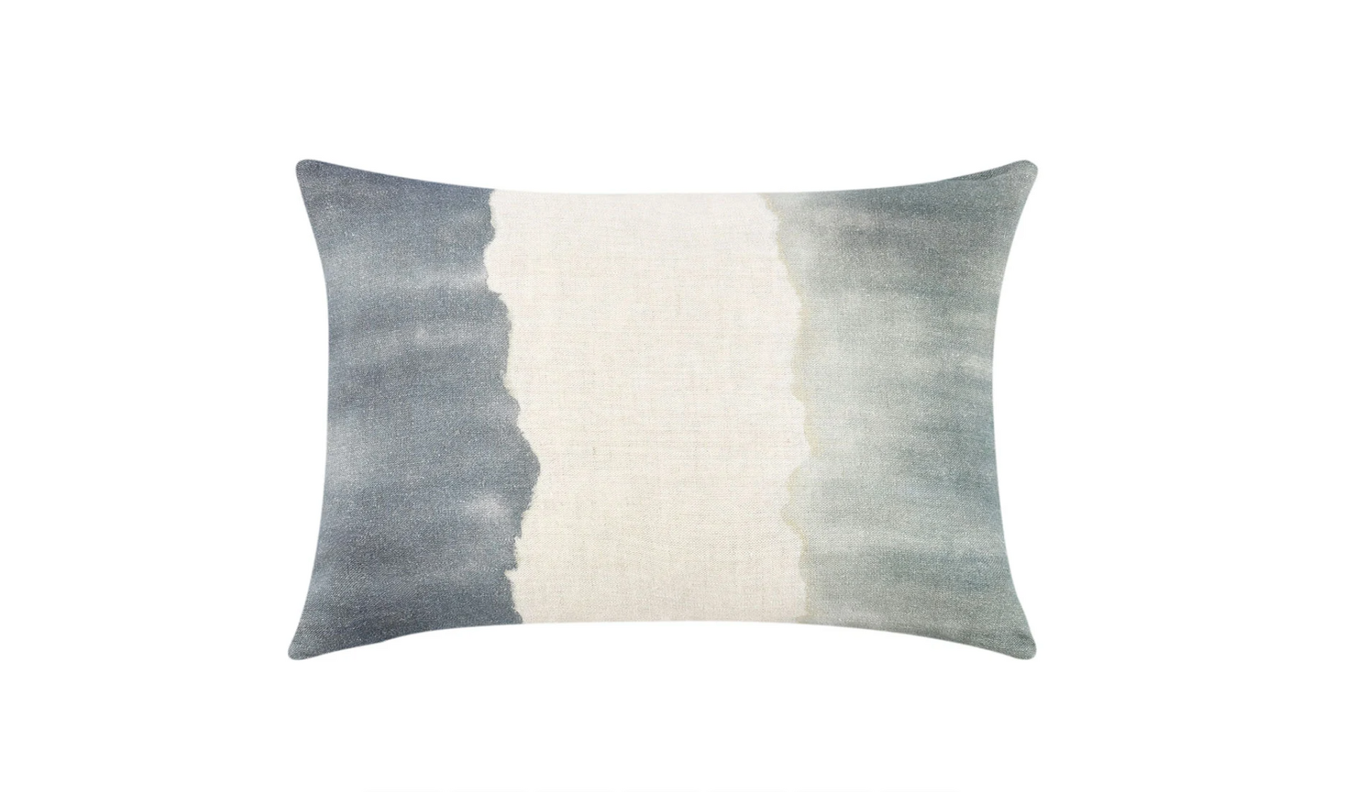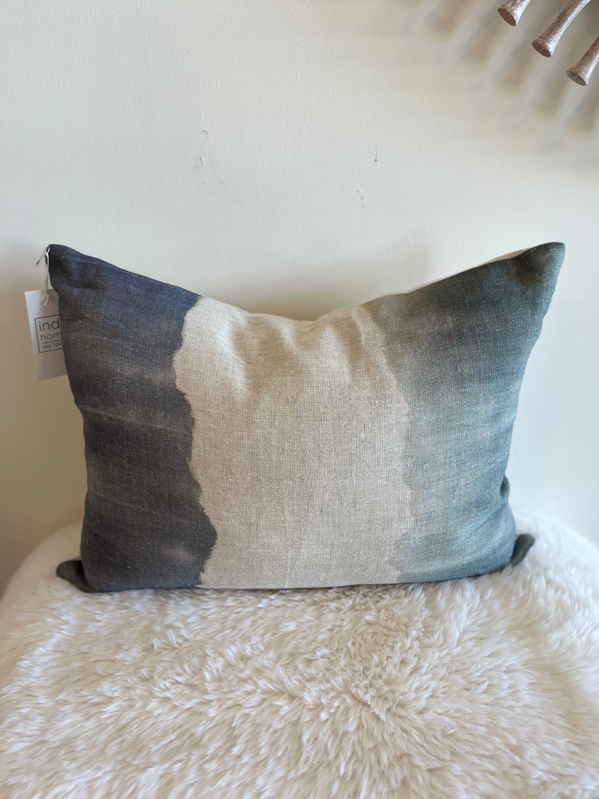 Cet oreiller lombaire multicolore bleu et vert présente un motif imprimé numérique.