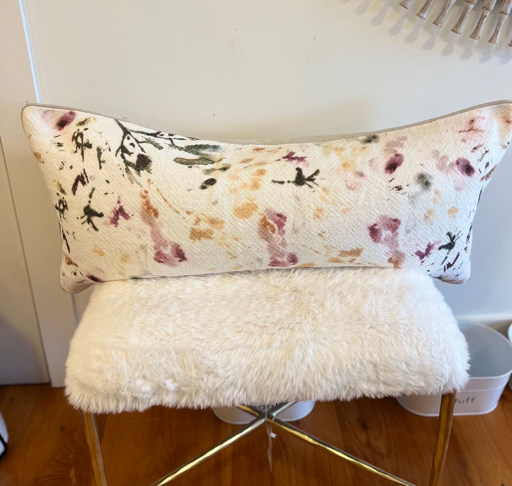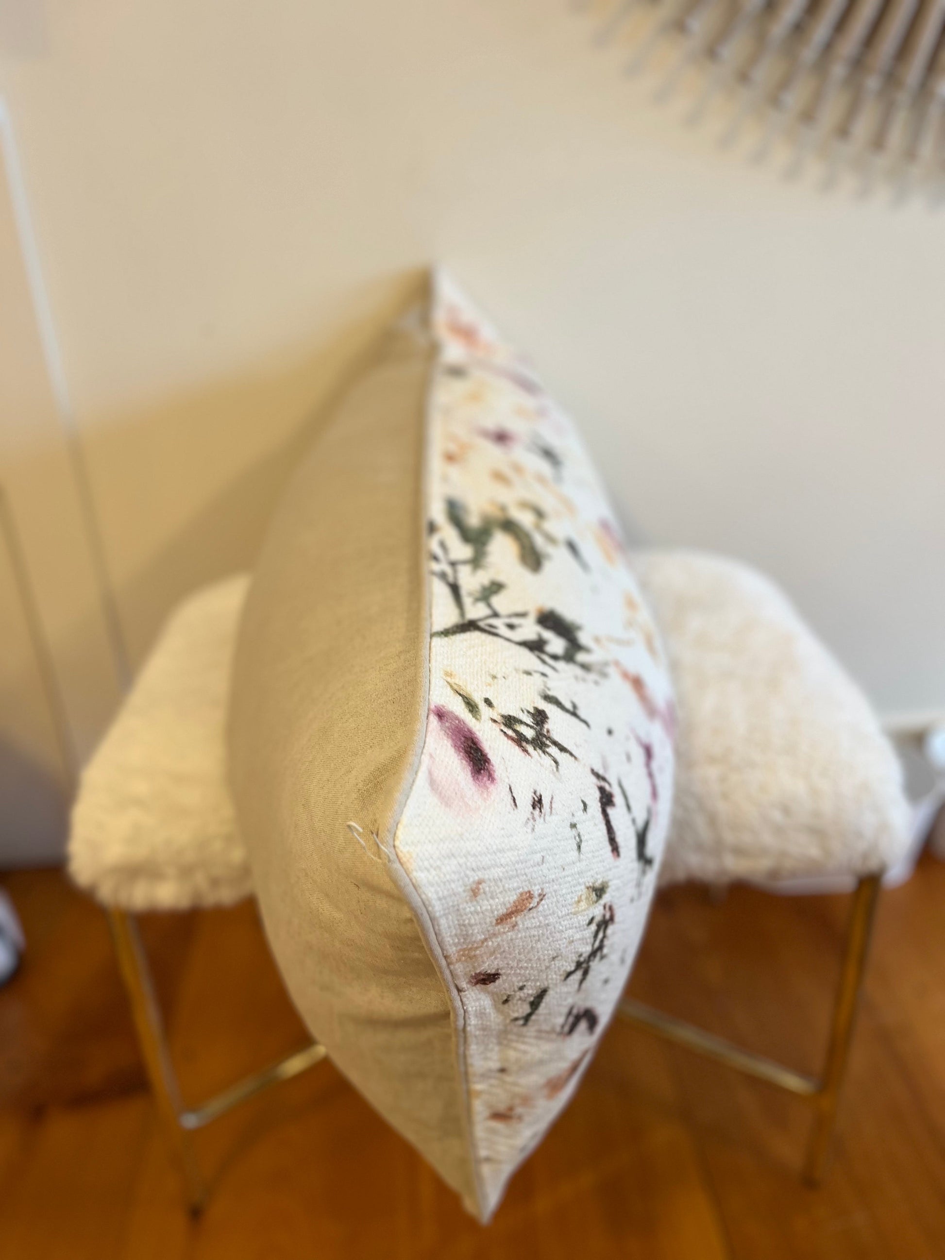 Ce grand coussin lombaire présente un motif de fleurs pressées à impression numérique.