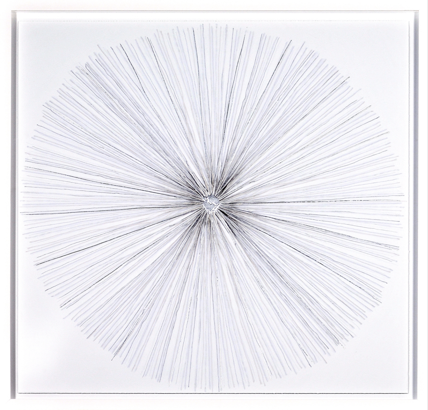 Cette beauté argentée et dorée allie art textile et dorure à l'argent pour créer une œuvre subtile et élégante. Son image en relief, aux bords déchirés et à l'encadrement profond, se distingue par son profil blanc immaculé.