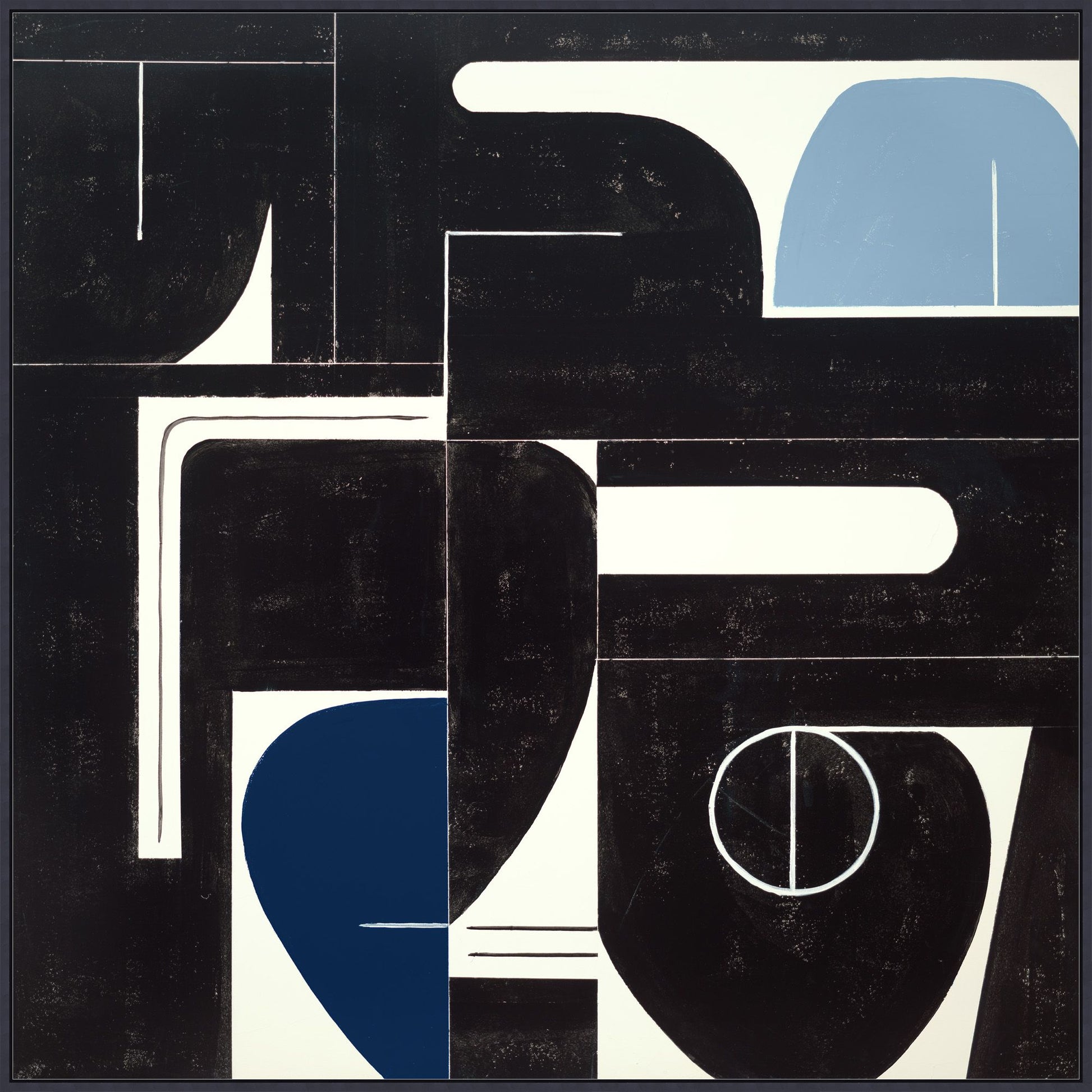 Un jeu graphique sur toile, sublimé par de multiples couches de texture. Encadré noir mat.