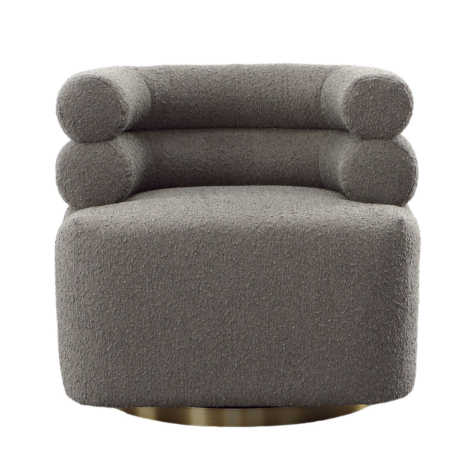 Revêtu d'un revêtement en fausse peau de mouton ou en cuir bouclé, ce fauteuil d'appoint est doté d'une base pivotante qui vous offre une relaxation à 360 degrés. Doté d'accoudoirs tubulaires et de lignes courbes, ce fauteuil pivotant apportera une touche de douceur et de chic à n'importe quelle pièce.
