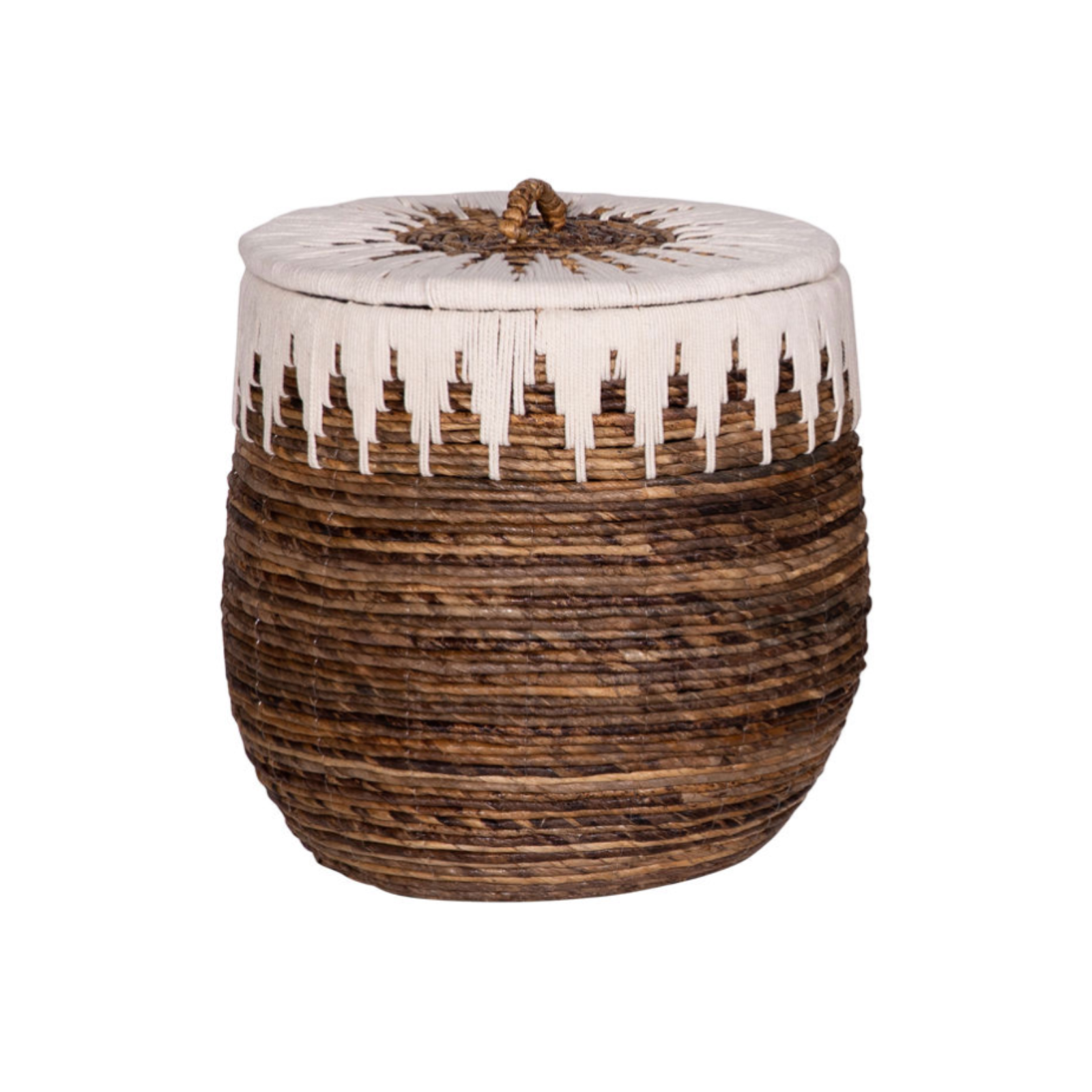 Adoptez l'art de l'organisation avec ces paniers arrondis. Entièrement naturels, ils sont tissés à la main par des artisans qualifiés à partir de matériaux durables pour une touche d'authenticité. Délicatement tressés à la main en Indonésie par des artisans qualifiés, ils utilisent un mélange parfait de fibres de feuilles de bananier et de fils de coton pour un style raffiné. Leurs motifs à chevrons et leurs formes triangulaires apportent une touche de texture. Dotés d'un couvercle, ils constituent un élément décoratif idéal dans votre buanderie pour ranger vêtements, draps ou linge de maison.