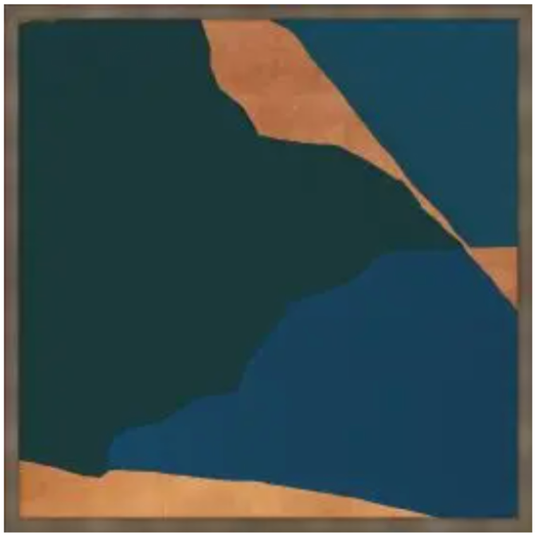Giclée avec feuille de cuivre appliquée à la main, encadrée dans une boîte à ombre.