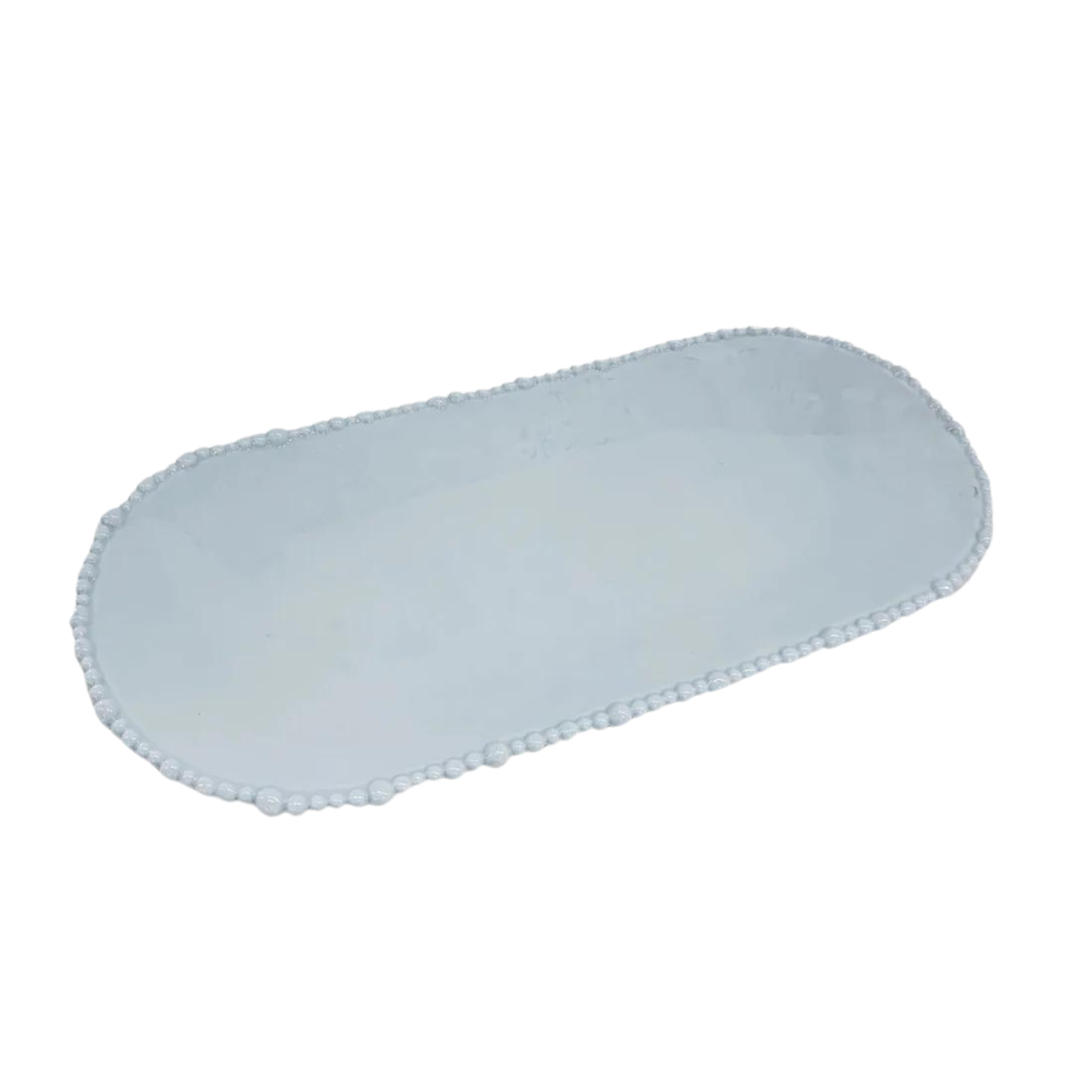 La mélamine réinventée… en bleu ! Avec son charmant bord nacré et sa surface couleur ciel éclatante, ce généreux plateau ovale peut être associé à d'autres pièces à bord nacré pour un service coordonné ou combiné à des articles d'autres couleurs pour une table éclatante. Idéal pour servir fromages, pain, sushis ou charcuterie, ce généreux plateau a l'éclat, le poids et l'apparence d'une pièce en céramique. Fabriqué en mélamine de luxe pour un usage quotidien, ce plateau est idéal pour les réceptions intérieures et extérieures. Compatible lave-vaisselle (panier supérieur), poids élevé, qualité alimentaire, sans BPA ni PABA.