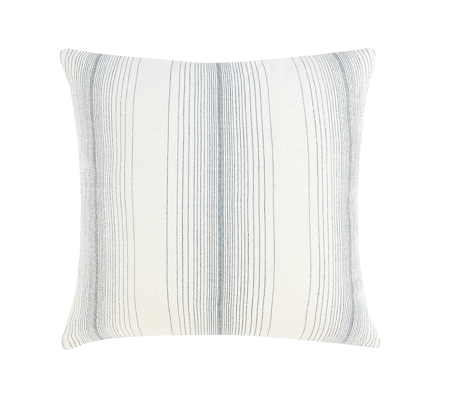 Cet oreiller réversible en lin et coton présente un motif sérigraphié à la main avec une technique de broderie cousue à la main.