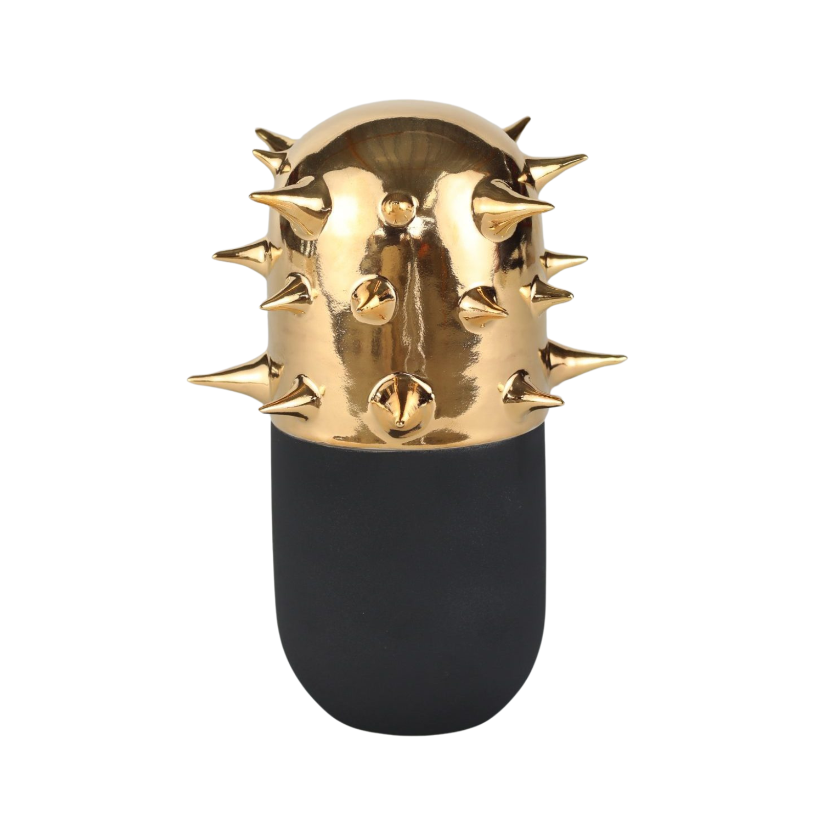 Boîte à capsules sculpturale avec pointes en or 22 carats placées à la main.