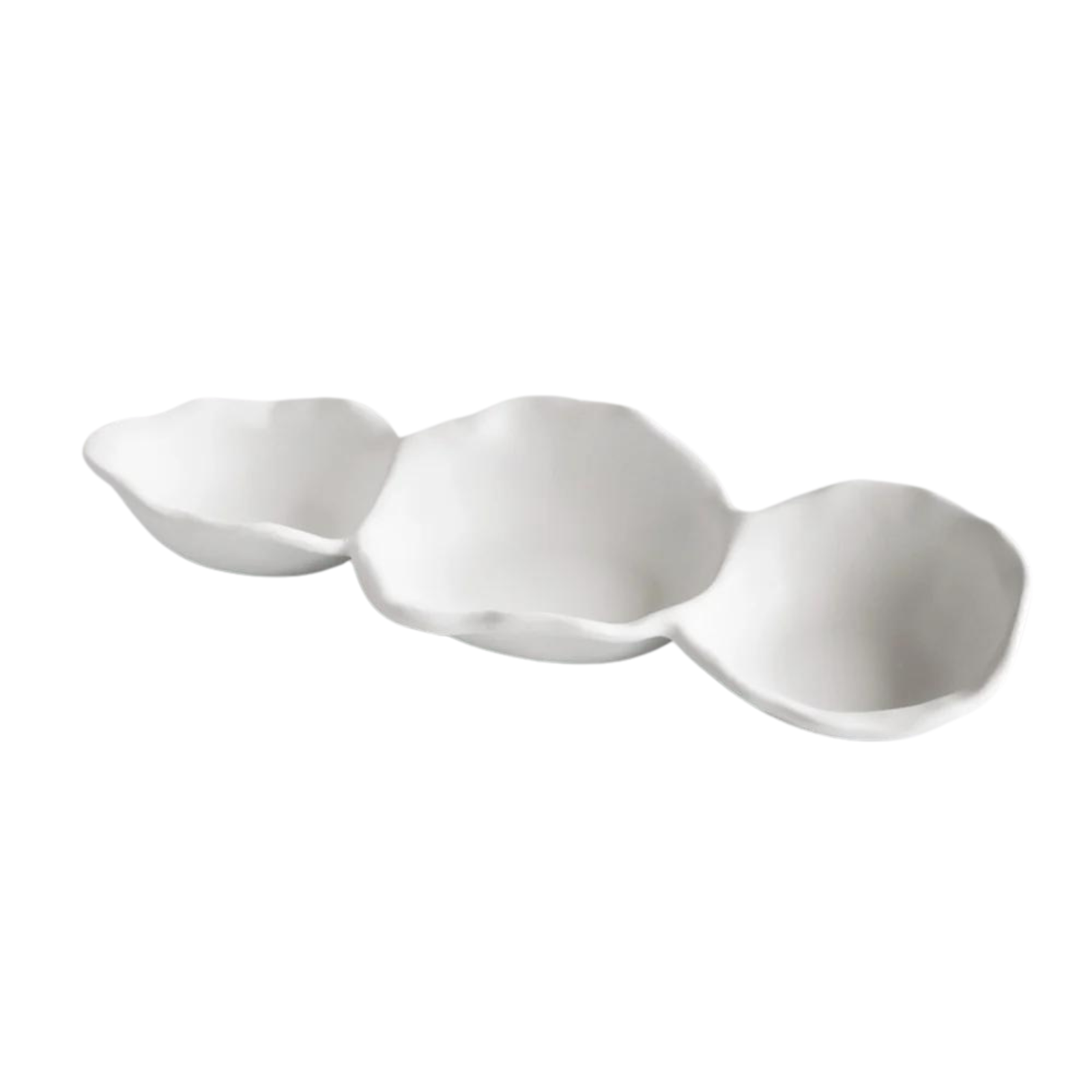 Trois en un ! Idéal pour le bar à la maison. Parfait pour les sauces, les tapas ou les garnitures. Servez-y des noix, des olives et des amuse-gueules lors de votre prochaine fête. Un cadeau attentionné. Cette pièce a la texture, le poids et l'apparence d'une céramique, mais est fabriquée en mélamine de luxe pour un plaisir quotidien. Un mariage de style et de texture dans un matériau adapté aux modes de vie actifs d'aujourd'hui. Ces pièces sont idéales pour les réceptions en intérieur comme en extérieur. Compatible lave-vaisselle, poids lourd, qualité alimentaire, sans BPA ni PABA.