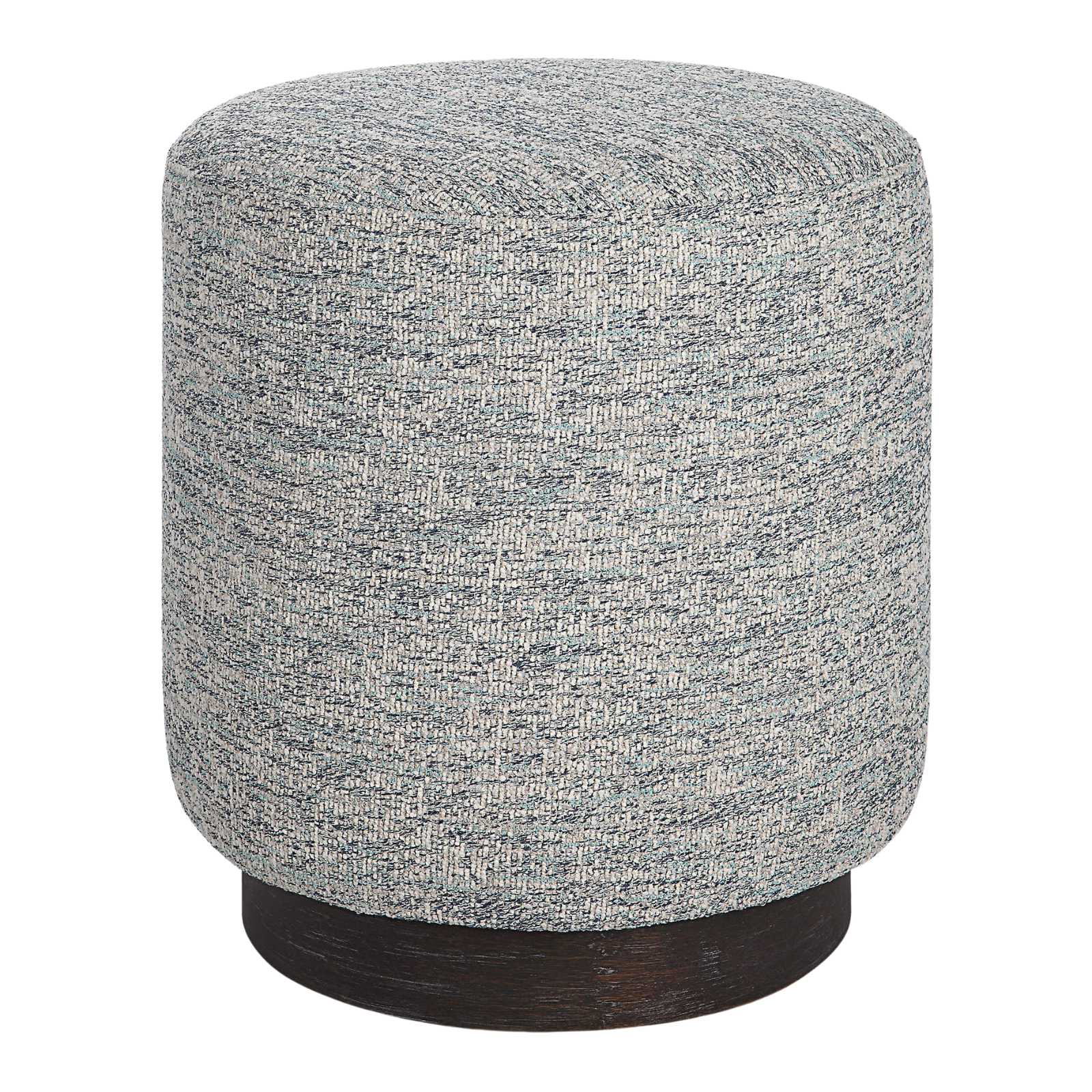 Ce pouf moelleux est recouvert d'un tissu tweed bleu et blanc décontracté et repose sur un piètement en chêne teinté noyer foncé. Polyvalent et élégant, il peut servir de siège ou de repose-pieds, être utilisé en groupe ou comme pièce d'appoint.