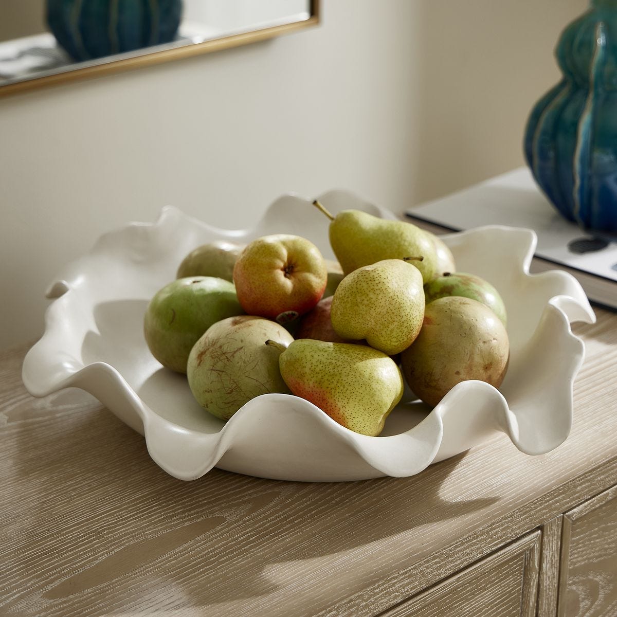 Ce bol sculptural en céramique blanche séduit par sa forme fluide et organique, rappelant les vagues de l'océan ou de délicats pétales. Une pièce remarquable, parfaite pour tout espace. Peut être accroché au mur ou utilisé comme accessoire de table. Convient pour une utilisation en extérieur, mais une protection contre le gel est recommandée.